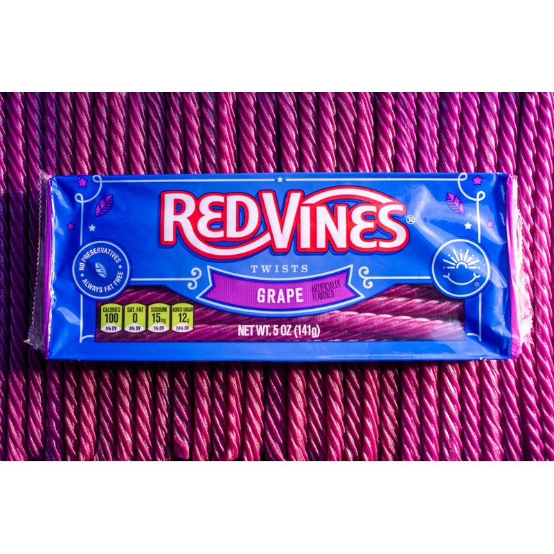 - Fruity Grape Vines licorice is the perfect companion for salty snacks like popcorn, chips or trail mix