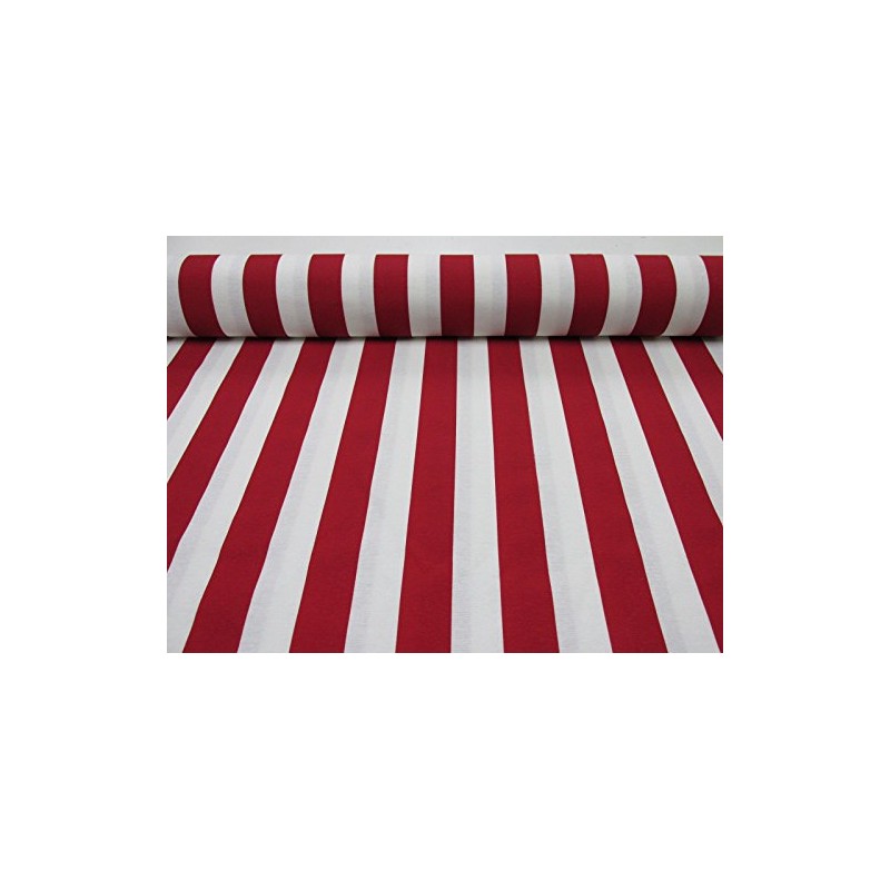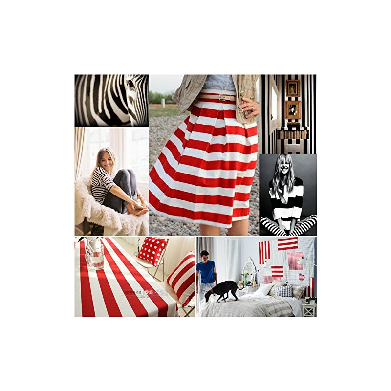 • RED and white broad striped fabric. Bold and versatile wide stripes. Medium weight linen look and feel fabric Suitable for craft applications, curtains, tablecloths, bedspreads, pillowcases, bags and other art or sewing projects (See pics for ideas)