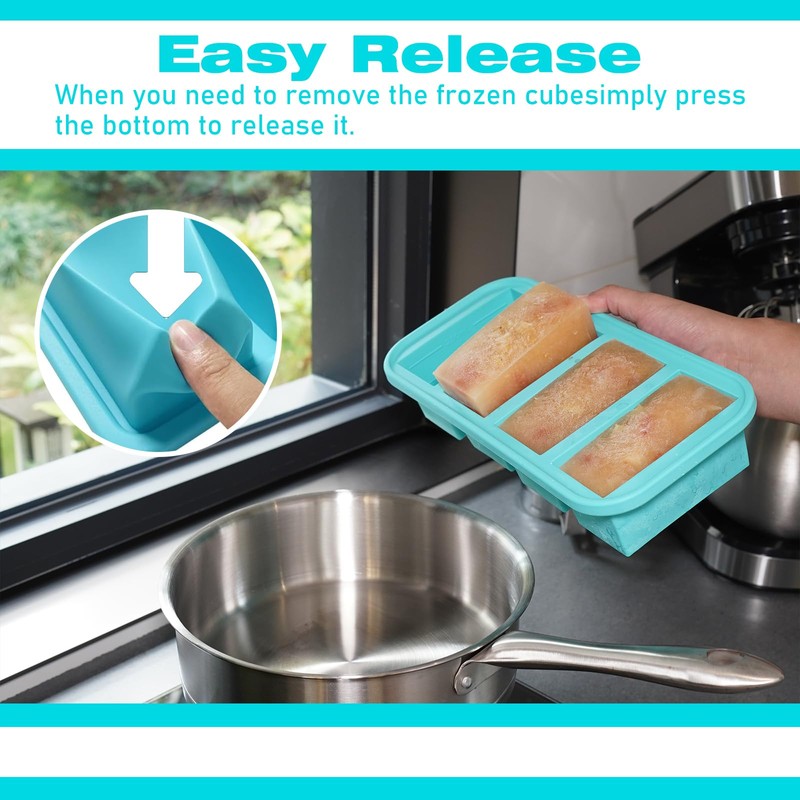 REDANT Soup Cubes Large Silicone Ice Cube Trays for Freezer with Lid - Easy Meal Prep Container and Kitchen Storage Solution - 1 Cup Silicone Molds for Food, Soup, Smoothie Storage and More - 2Pack