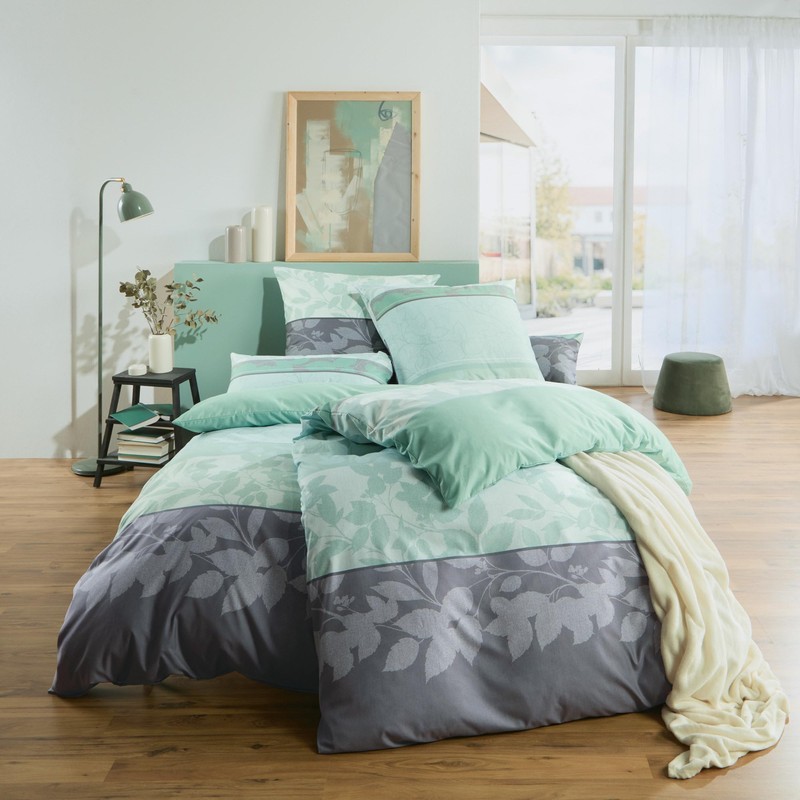REDBEST Bed Linen Microfibre Satin Mint Grey Size 135 x 200 cm (80 x 80 cm)