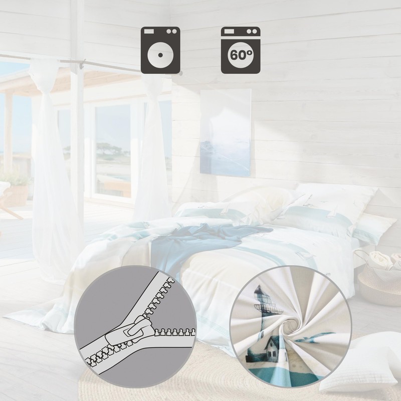 - The maritime motif looks like painted in a natural colour combination, it spreads coastal feeling in your sleeping environment.