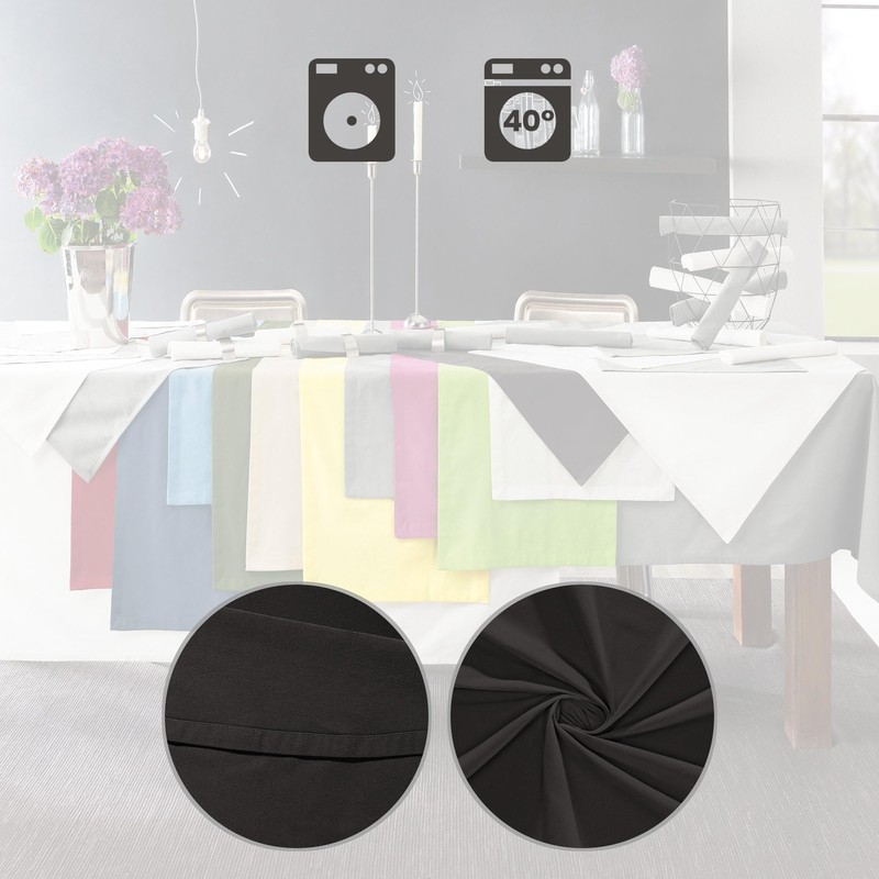 - Square tablecloths are made with a high-quality envelope hem. Strong, smooth weave.