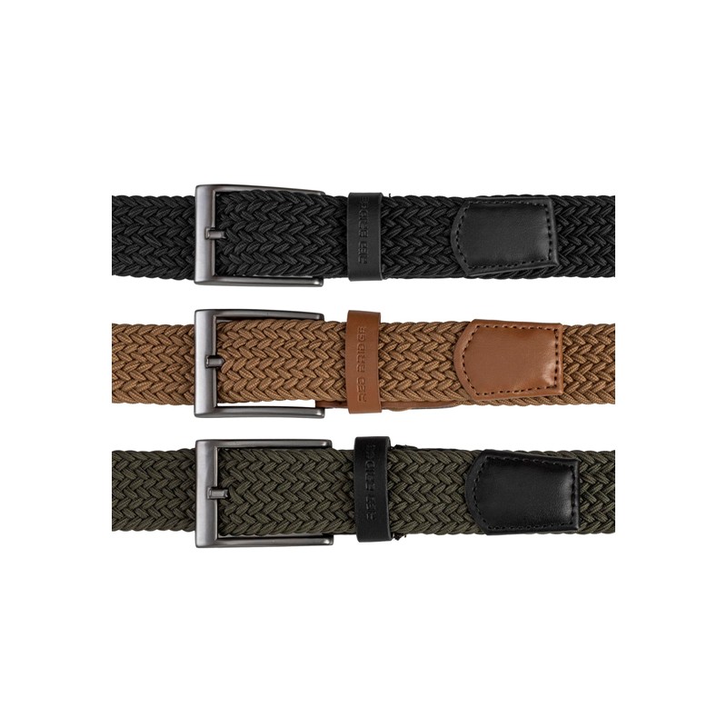 Redbridge Elastic Braided Belt Set of 3 with Metal Clasp - Flexible Fabric Belt in Set of 3, Black/Brown/Khaki
