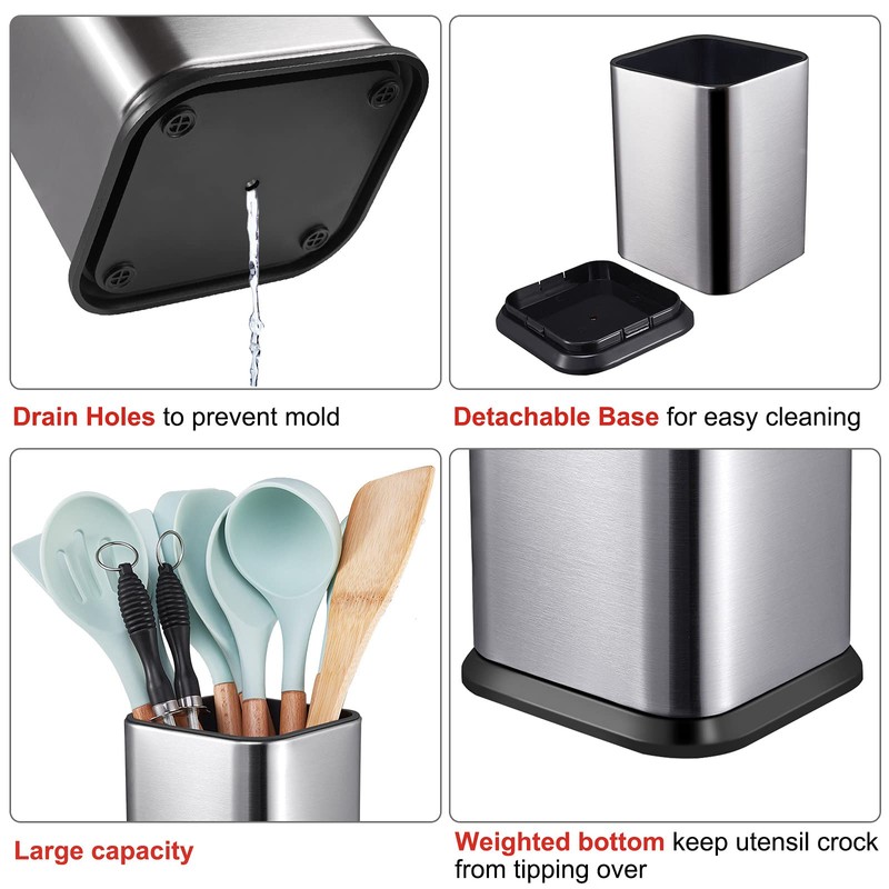 - 【EASY CLEANING】Detachable design allows you to easily clean this stainless steel utensil crock.