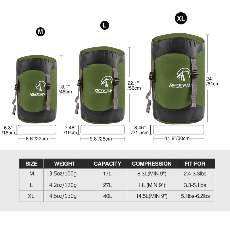 - High Quality Material: Redcamp compression stuff sack is made of light weight 210T polyester fabric, which is durable and has a longer life