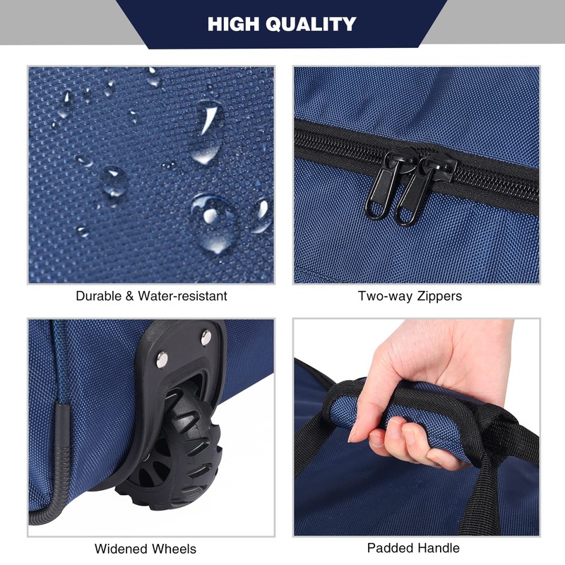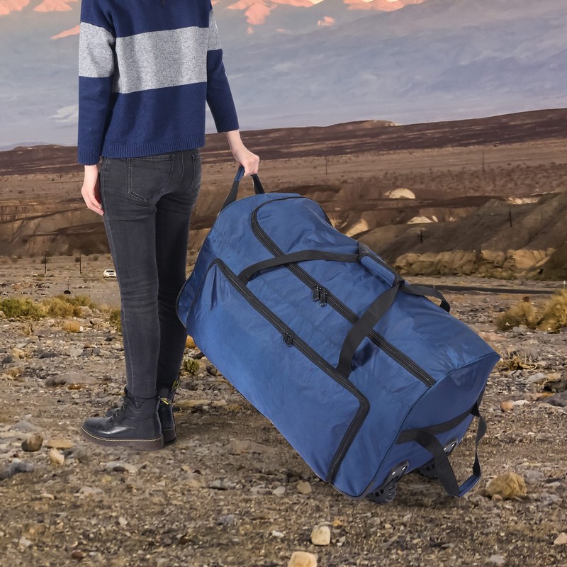 - Portable Bag: There are comfortable side carry handles for easy carrying. The duffel bag with rollers is ideal to be used as travel bag, airplane carryon, luggage, gym bag, sports bag, camping bag, storage bag.