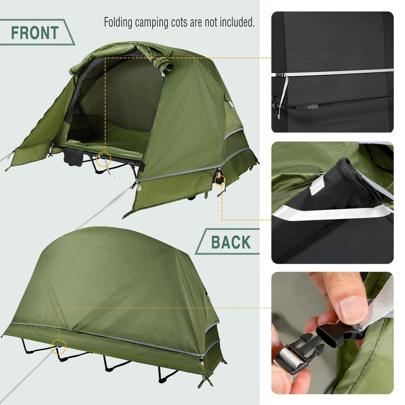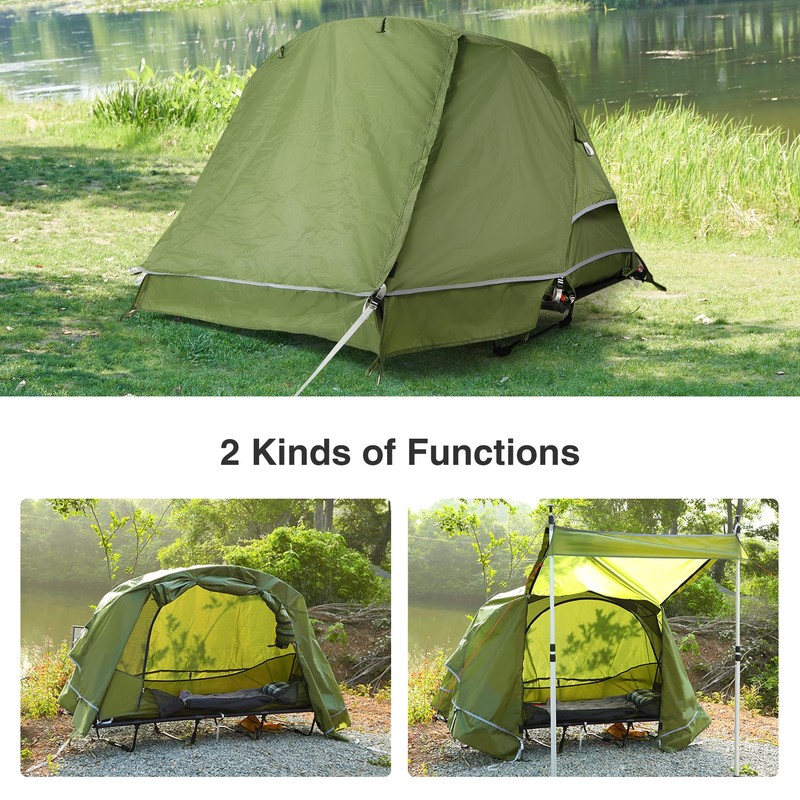 - All Occasions: The sturdy cot tent is perfect for various activities, such as camping, hiking, picnic, fishing, RV traveling and so on. Provide you with more comfortable sleeping or resting experience.