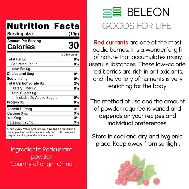 - Red Currant Powder - Is a natural product obtained by drying and grinding red currant berries. It retains most of the beneficial properties of fresh berries and can be used in cooking, cosmetics, and for health enhancement.