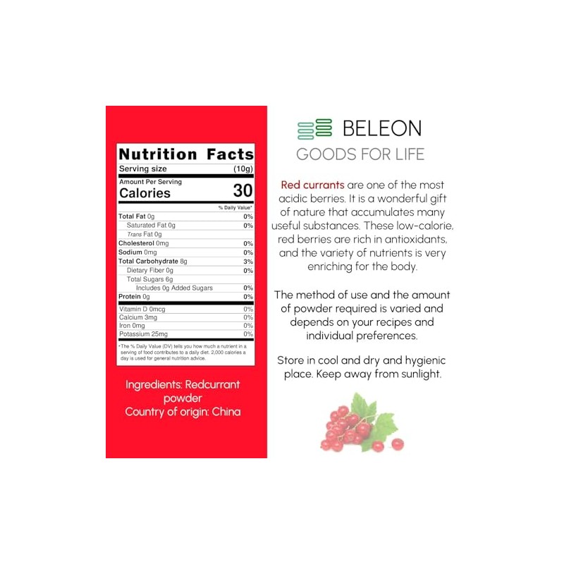 Redcurrant Powder - Pure All Natural Whole Powder for Baking, Flavoring, Smoothies, Beverage, 8 oz