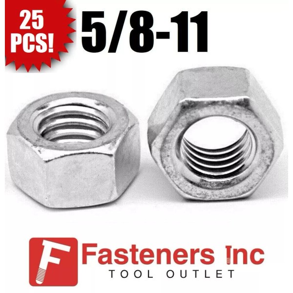 Redding Fasteners (Qty 25) 5/8-11 Low Carbon Grade 2 Finished Hex Nuts Zinc Plated