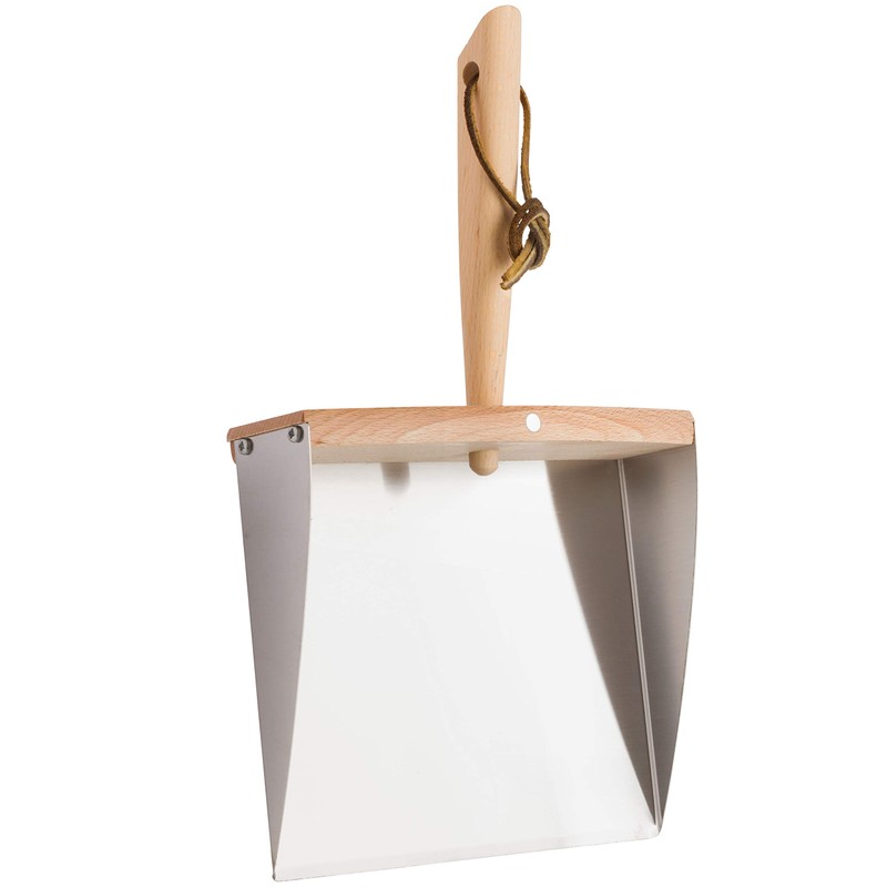 - TWO-PIECE SET - Magnetized set snaps together for quick, convenient storage; both dust pan and brush include a leather hanging strap