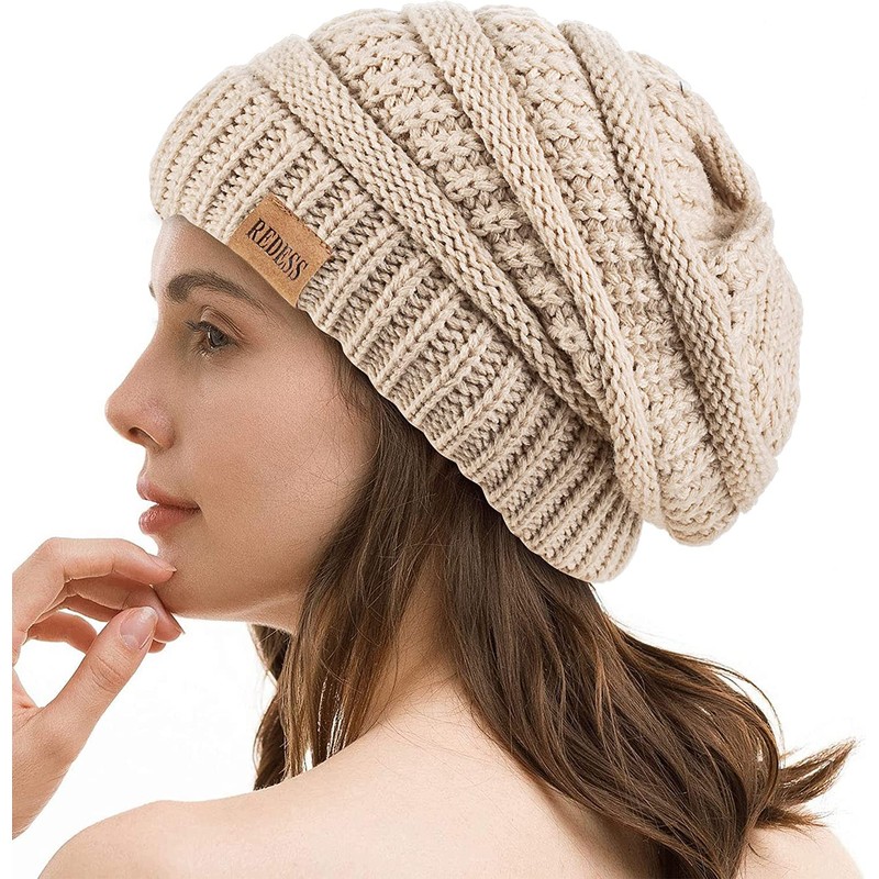 REDESS Slouchy Beanie Hat for Men and Women, Winter, Warm, Chunky, Soft, Oversized Cable Knit Hat, Oatmeal