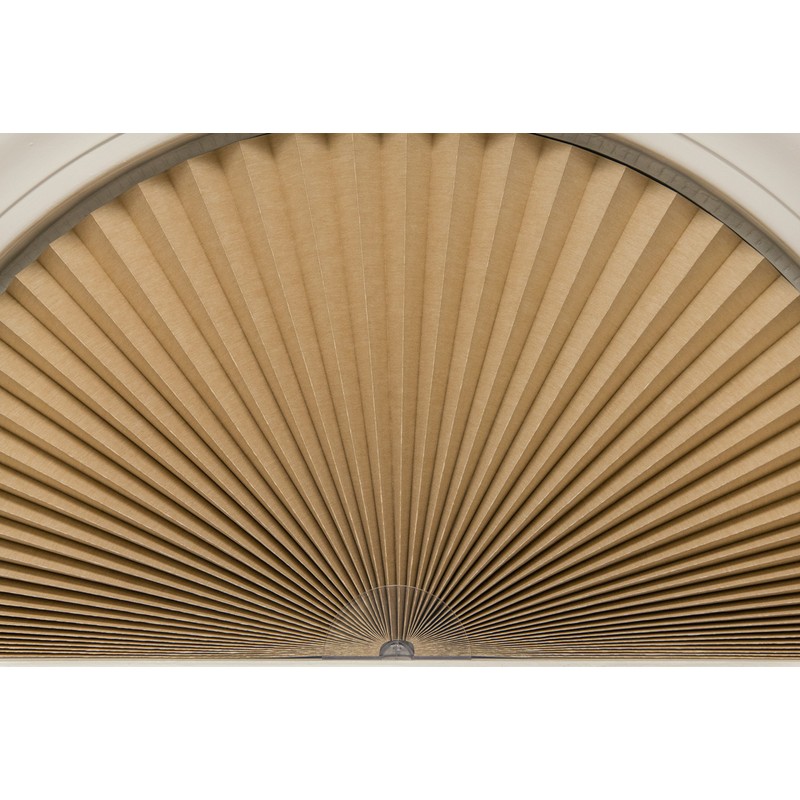 Get a custom fit and finish for a fraction of the cost with Redi Shade’s Original Arch Light Blocking Fabric shade. Designed for perfect half-rounded arch shaped windows, this pleated shade provides near maximum privacy while blocking heat, sunlight and UV rays. No Tools needed for installation. Just trim at home for a perfect fit inside the window, then peel and place for permanent installation — no drills, screws or brackets needed. These light blocking fabric shades are available in white and natural colors and are made from non-woven polyester with heat reflective layer. These natural color pleated shades are white color to street side. Contact Redi Shade if you need help or have questions 1-888-608-6611 or customersupport@redishade.com.