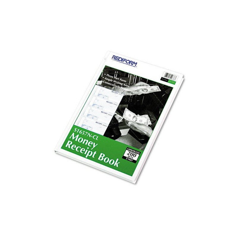 Rediform Hardcover Numbered Money Receipt Book, 6 7/8 x 2 3/4, Three-Part, 200 Forms