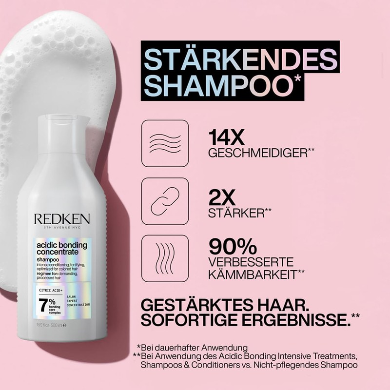 - Distribute an amount corresponding to the hair length in damp hair, gently massage in and rinse well. For optimal results, combine with Redken Acidic Bonding Concentrate Conditioner and the Acidic Perfecting Concentrate Lotion. Suitable for daily use.