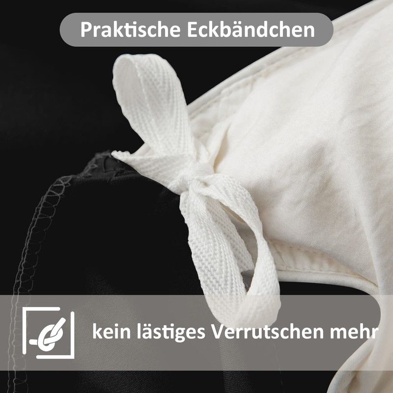 - Practical and quick design: The duvet cover has 4 corner ties to fix the duvet in place and the zip of the duvet cover prevents the duvet from shrinking into a ball. For a clean look, the pillowcase is hemmed and has no zip.
