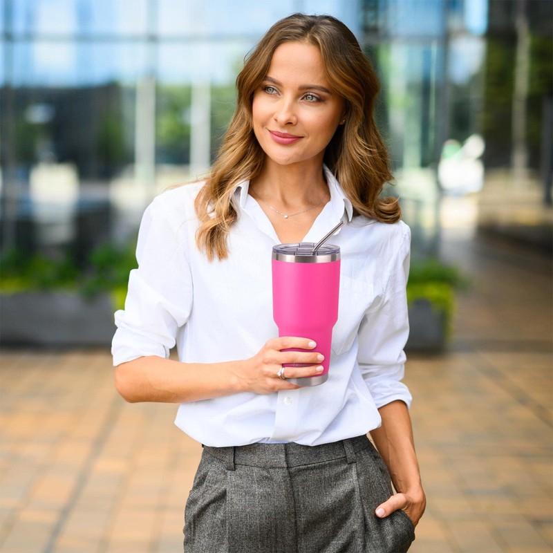 - TAPA HERMÉTICA ANTIDERRAMES: El exterior tiene una cubierta de textura granulada que impide que el vaso se caliente, enfríe o sude, proporcionándote un agarre firme y seguro. También cuenta con una tapa hermética que evita los derrames cuando vas en movimiento