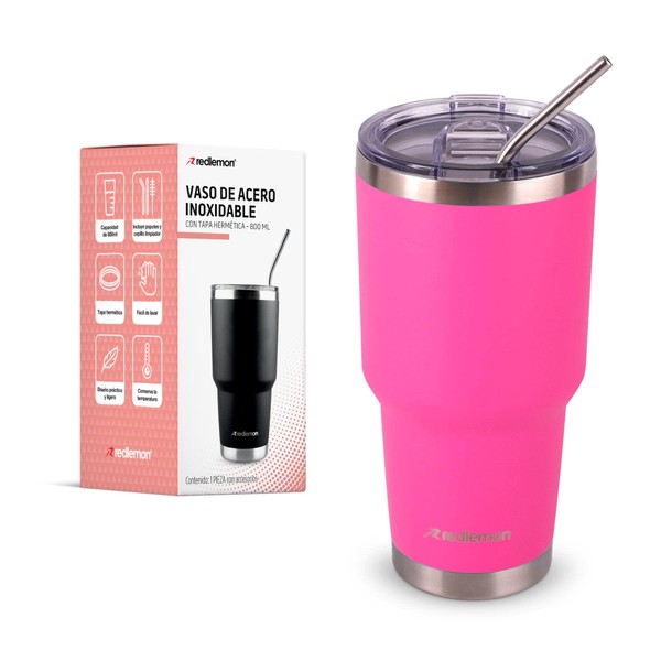 Redlemon Vaso Térmico de Acero Inoxidable con Tapa Hermética (800 ml). Termo para Café con 2 Popotes y Limpiador. Botella de Agua para Hombre y Mujer Conserva la Temperatura Fría o Caliente 8 Horas