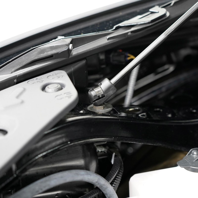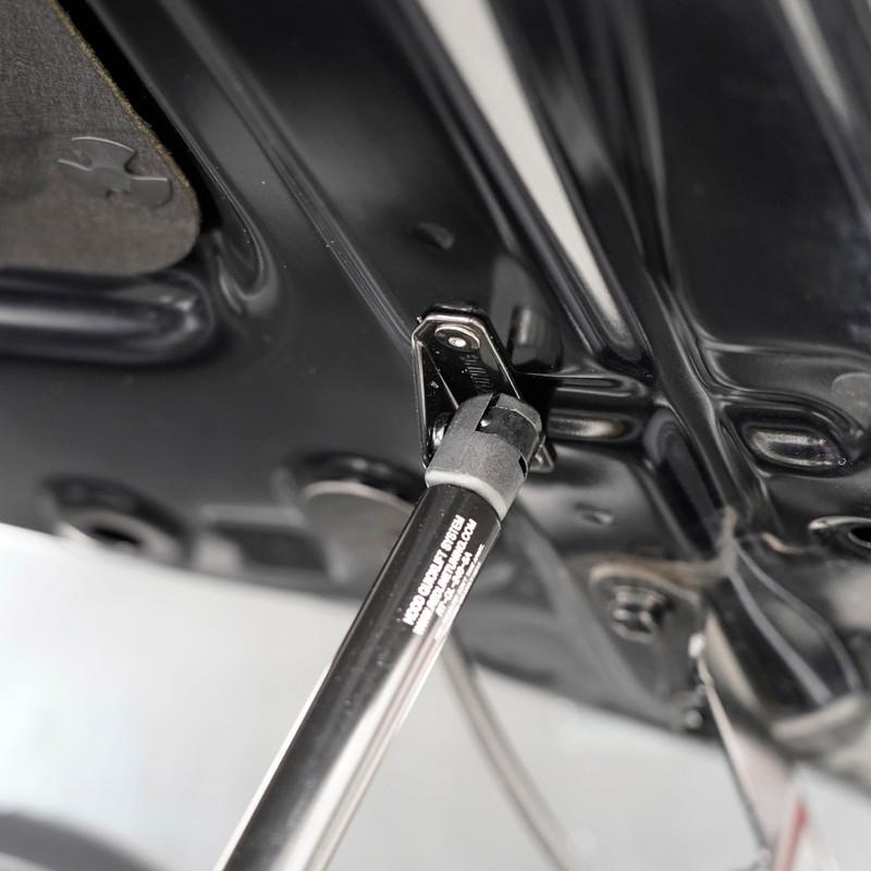 - ✔ BLACK GAS SPRINGS - The gas springs used in this application each have a black e-coated steel body with black annealed extending rod. The end-fittings used are designed specifically for this application. Gas strut orientation is always body end up (large tube attaching to hood bracket) and extending rod attaches to lower ball stud.
