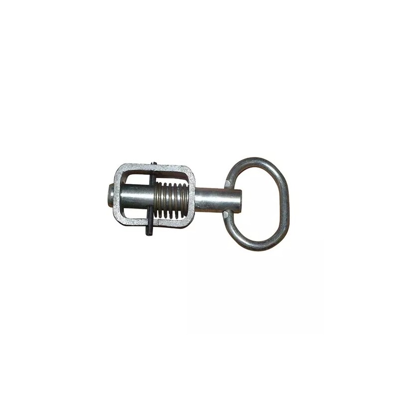 This Spring Latch has a 5/8 inch pin. It has a zinc plated finish, and it can be welded on at the nose of the latch.