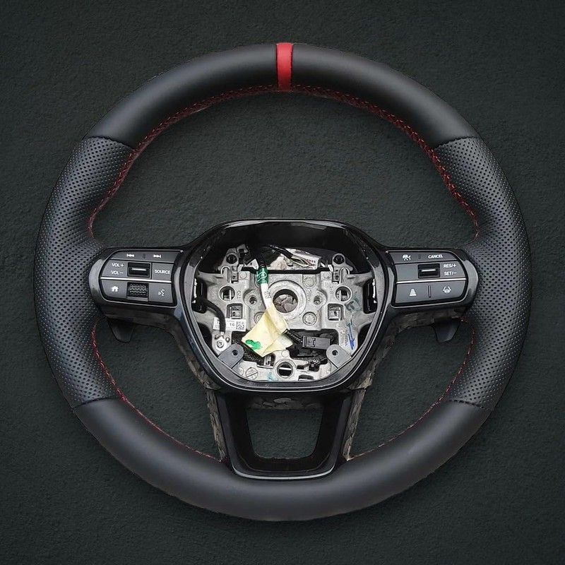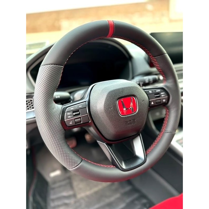 - Custom steering wheel cover for Civic 2022-24 cars only - NOT GENERIC. FITS GREAT unlike those universal Chinese ones that never work 100%! Tailored to this steering wheel only. Will not fit other variants. Includes thread and needle to lace the cover on. IMPORTANT: REPLACES factory leather if present on the wheel. HEATED WHEELS: installs over factory leather, do not remove!