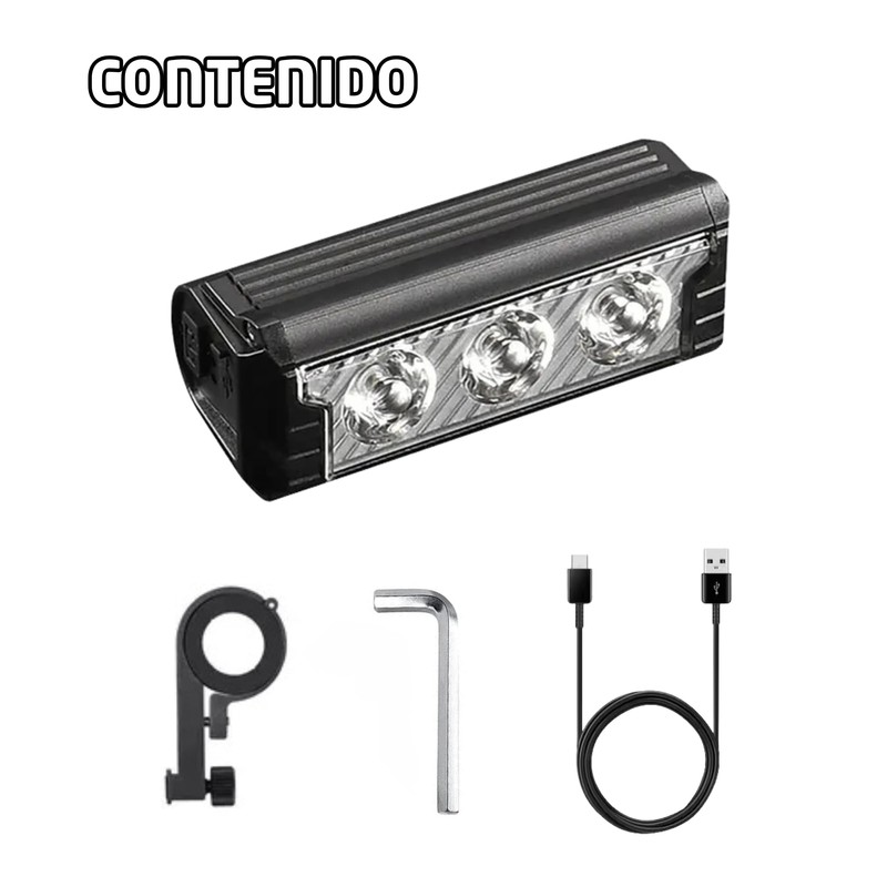 - Potente iluminación de 3000 lúmenes – Equipado con 3 LEDs de alta potencia, ofrece una luz intensa y uniforme, mejorando la visibilidad hasta 200 metros de distancia.