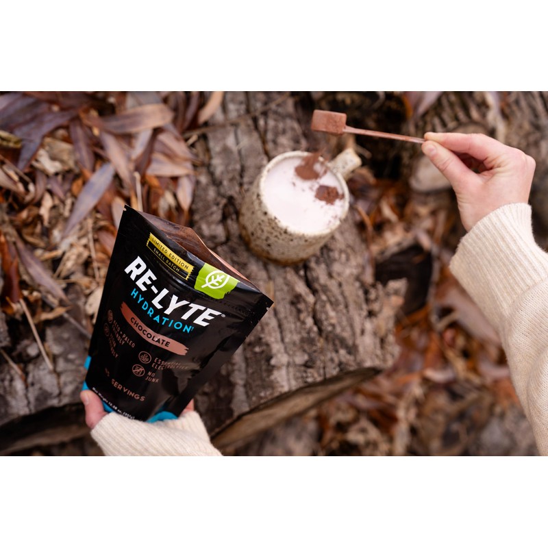 • CHOCOLATE- Indulgent and comforting, Limited Edition Chocolate Re-Lyte Hydration delivers the rich, smooth taste of chocolate with the added hydration benefits of Real Salt. Perfect for cozying up on cold days, this flavor captures the warmth of winter nights and fireside relaxation, leaving you hydrated, satisfied, and ready to savor every comforting moment. Chocolate Re-Lyte tastes great hot or cold, in water, milk, smoothies, coffee, and more, so get creative and mix it up!