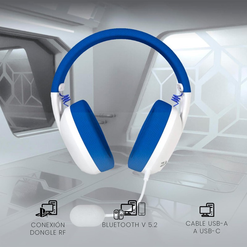 Redragon IRE White/Blue H848B Wireless Bluetooth Headphones with USB Dongle, Ultralight 180g, Detachable Mic, PC, Console, Mobile