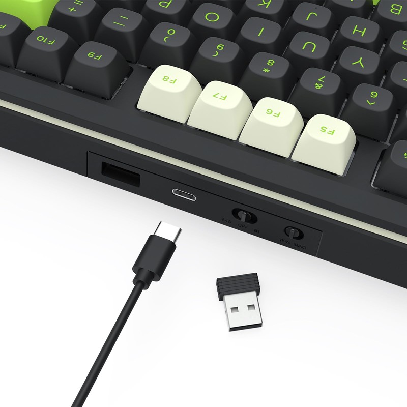 Experience next-level typing with this sophisticated 81-key mechanical keyboard featuring RGB backlighting and versatile triple-mode connectivity. The gasket construction and premium PBT keycaps in an elegant tri-color scheme of white, light green, and dark green deliver both style and substance. This compact keyboard combines professional-grade performance with striking aesthetics, highlighted by customizable RGB lighting effects that add personality to your setup. The mechanical switches provide precise tactile feedback and satisfying keystrokes, making it ideal for both gaming and productivity. With its space-saving design measuring just 15 x 7.4 x 2.56 inches, this keyboard maximizes desk space while maintaining full functionality. The Bluetooth capability offers wireless freedom, while its robust construction ensures durability for daily use. Perfect for PC gaming and professional work alike, this keyboard delivers the perfect blend of performance, aesthetics, and functionality in a modern package.