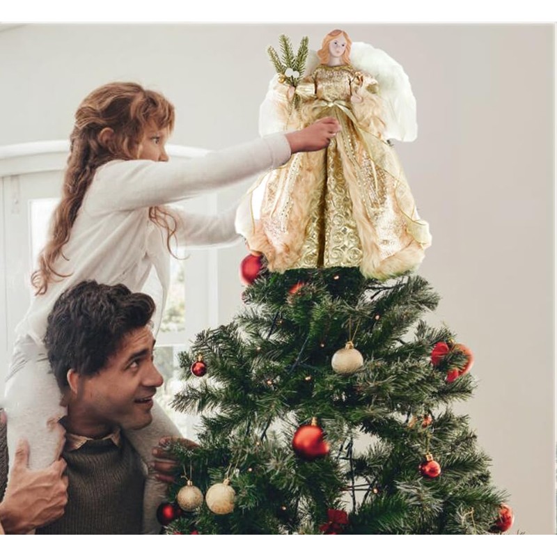 - đăApplicationăThis angel treetop is about 16" in lenght and 1.1 lb in weight, suitable for 6ft Christmas tree as warm inviting welcome to your family and friends, also as an excellent Christmas gift choice.
