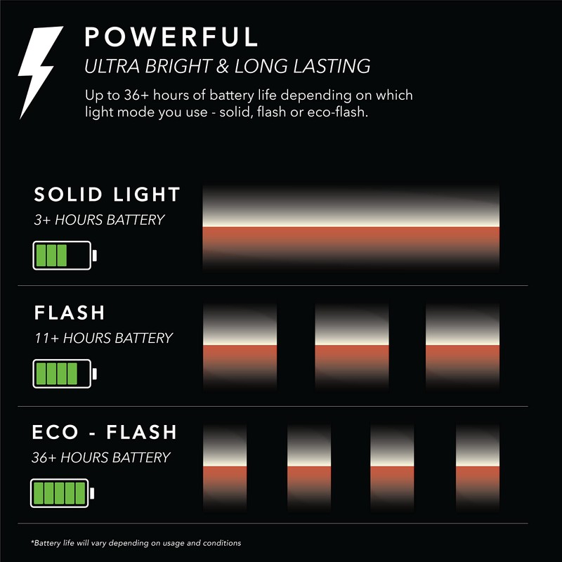 - USB充電式3ライトモード - アークライト自転車ライトは、使用している3つのライトモード(ソリッド、フラッシュ、エコフラッシュ)のどちらを使用しても、最大36時間以上のバッテリーでUSB充電式です。デュアルカラーライトモジュールは、フロントライトまたはリアライトとして動作できます。