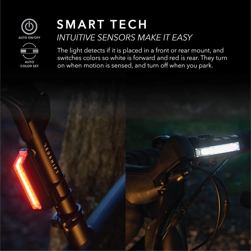 REDSHIFT アークライトLED自転車ライト、デュアルカラー、フロントリアバイクライトとマウント 昼と夜のライディング用、 36時間以上のバッテリー寿命、自動オン/オフ、USB充電式、防水、超高輝度LED マルチマウント