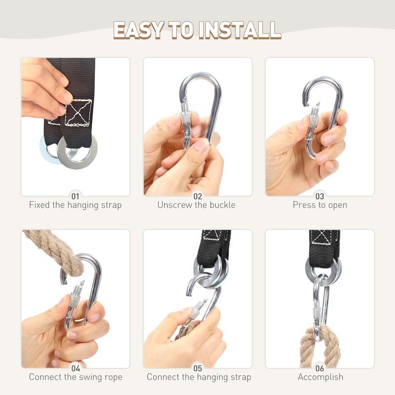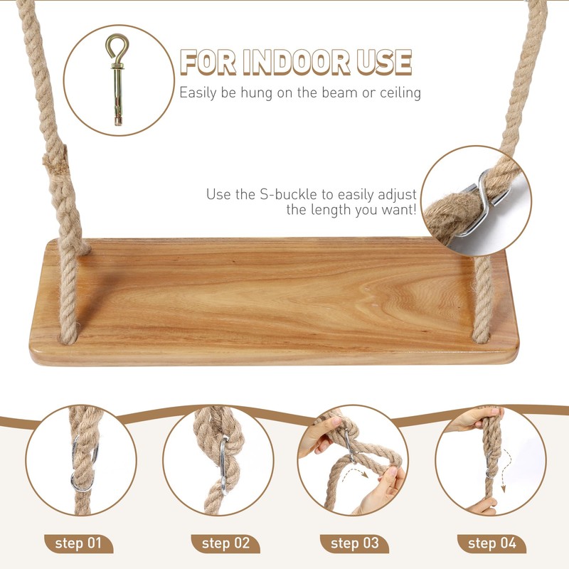 - Easy to Install: All neccessary parts (2 tree straps) included. Choose a strong branch in your backyard to install the adjustable adult swing. You can also hang the outdoor wood swing on an indoor pole or install it on a beam with our 2 expansion screws.
