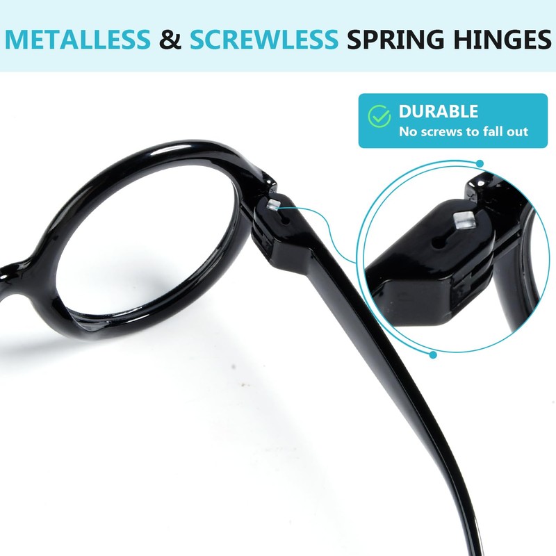 The screwless inner spring design allows the cheaters to avoid the risk of being unusable due to hinge damage, making them sturdy and durable.
