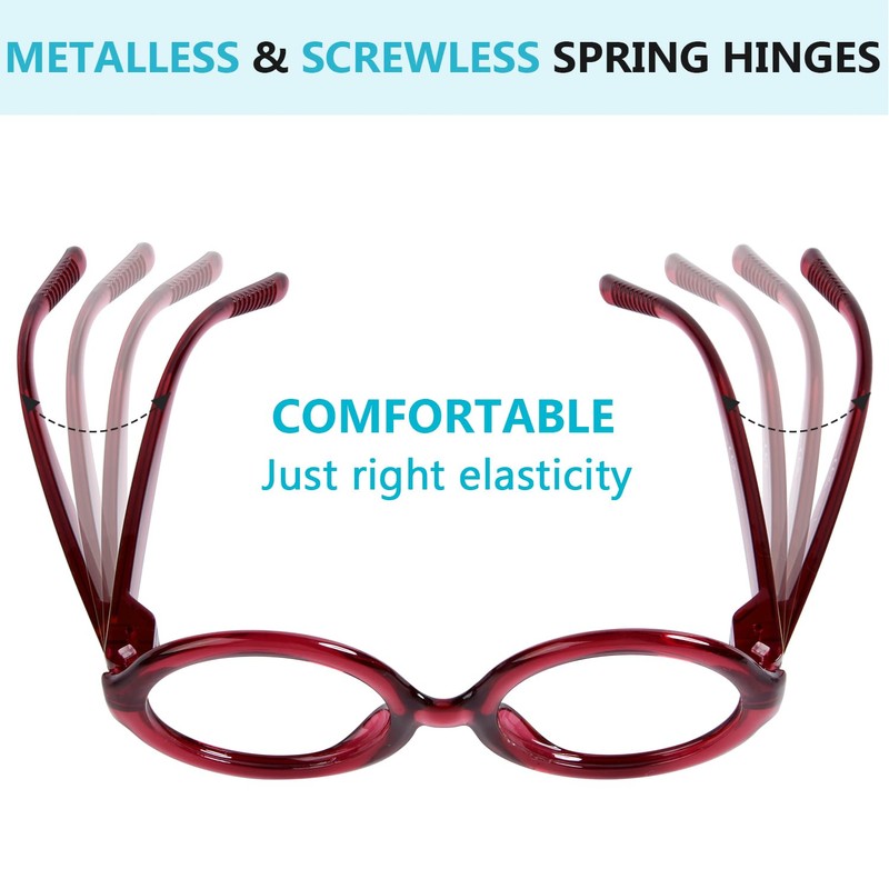 - You will be comfortable while wearing this oversized reader. No metal and no screws spring hinges create just the right amount of elasticity when the temples open outwards to both side, effectively reducing the pressure of wearing them.
