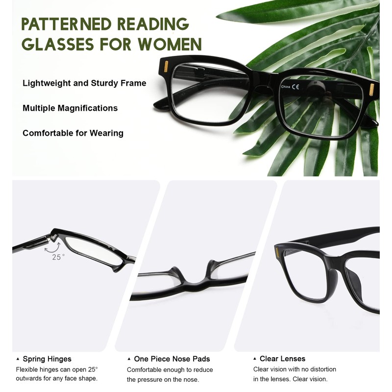 - ✿ Lightweight plastic frames and acrylic lenses, durable spring-hinged temples ensure flexible and comfortable, clear vision, Ideal for long term wear