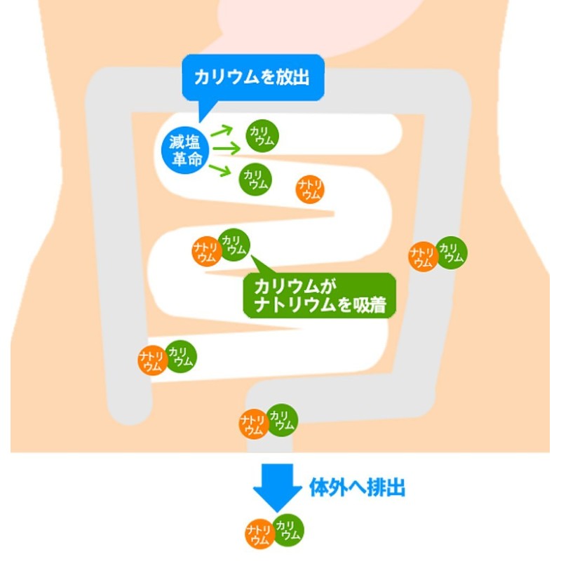 The "salting revolution" was developed as a raw ingredient of tan algae, releasing potassium in the body, and the potassium adsorbs sodium, releases it outside of the body through urine and feces.