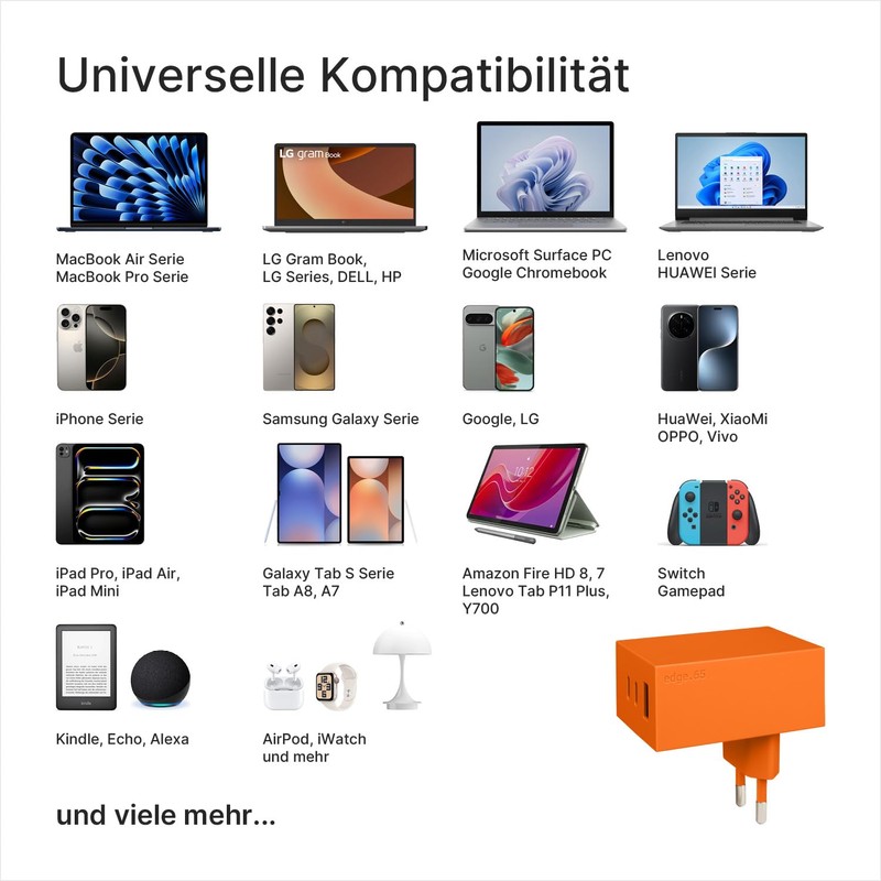 - 65 W fast charging: powerful USB charger of the latest technology and highest quality.