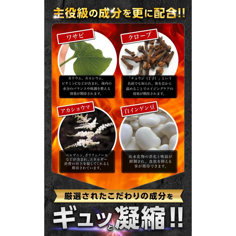 - ✅ 【サポート成分について】 ワサビはカリウム、カルシウム、ビタミンCなどが含まれ、体内の水分のバランスや体調を整える効果が期待されます。 クローブは「チョウジ(丁子)」とも言い、体を芯から温めることでエイジングケアへの効果が期待されます。