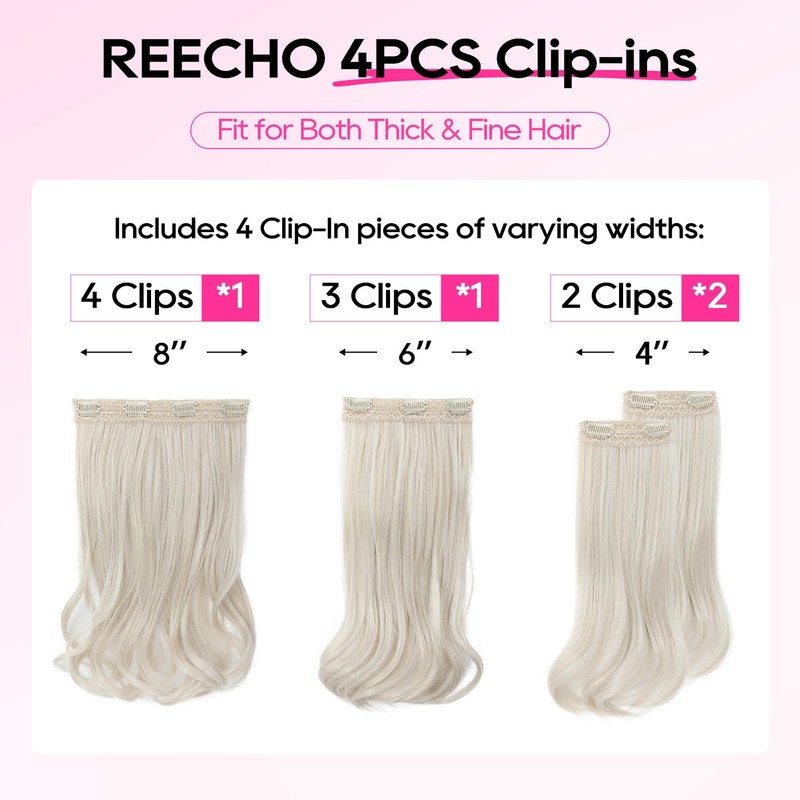 - [Instant Volume & Length] Transform your hair styles in minutes with REECHO clip-in hair extensions. Our 4-piece clip in hair extension adds luxurious length and volume, giving you a natural, full, and beautiful look. The ultimate solution for all hair types