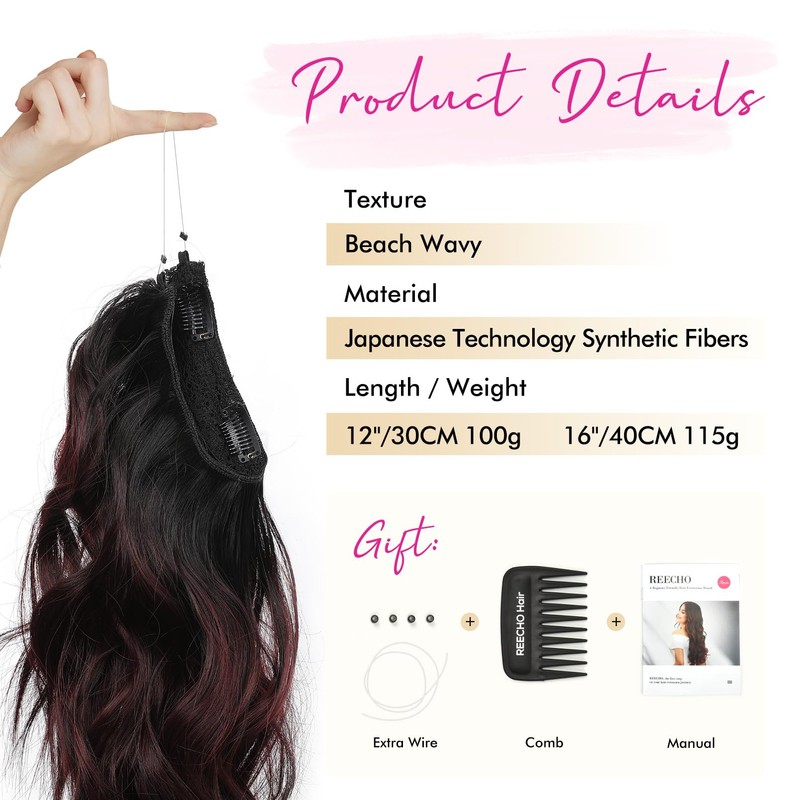 - ✨ [Glorious Length & Volume in 1-minute] REECHO invisible wire hair extensions use a transparent wire to add length and thickness without tape, glue, tape for damage-free easy on and off application in less than 1 minute