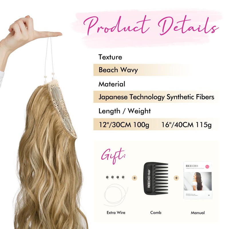 - ✨ [Glorious Length & Volume in 1-minute] REECHO invisible wire hair extensions use a transparent wire to add length and thickness without tape, glue, tape for damage-free easy on and off application in less than 1 minute