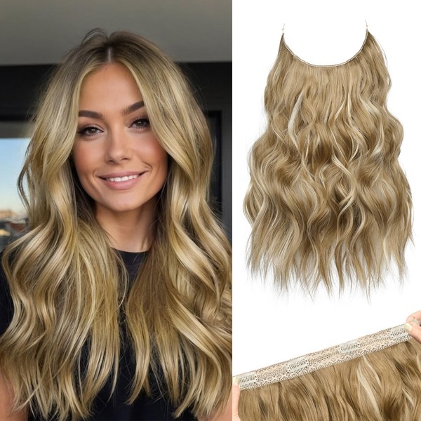 REECHO Invisible Wire Hair Extensions with Thinner Softer Lace Weft (Golden Blonde with Highlights, 16 Inch (Pack of 1))