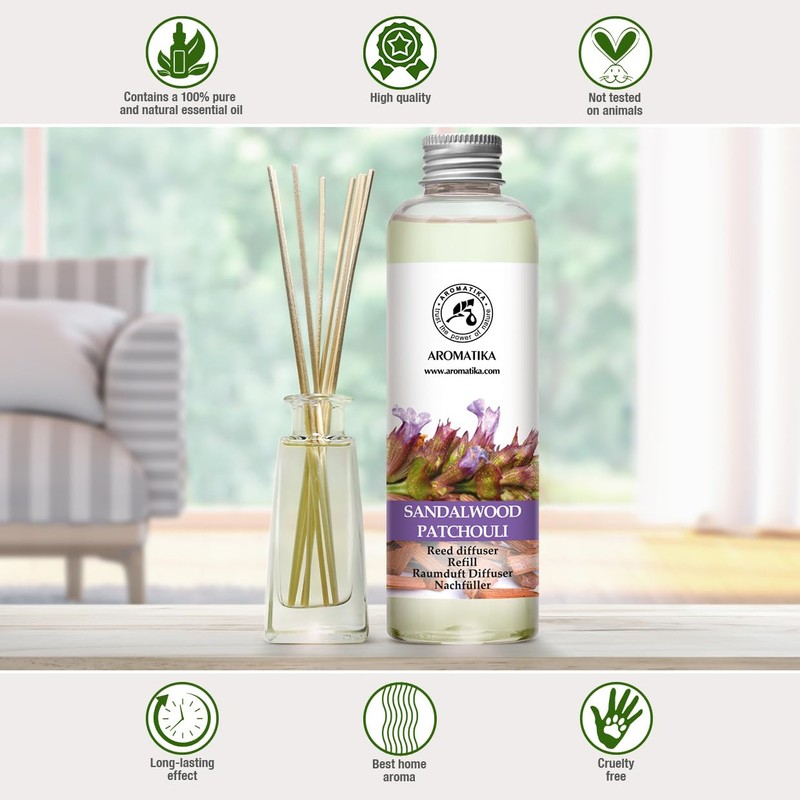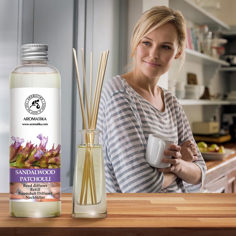 - Sandalwood & Patchouli Reed Diffuser Refill provides long lasting fragrance with pleasant scent. Just pour the refill into a clean diffuser bottle, insert sticks & enjoy