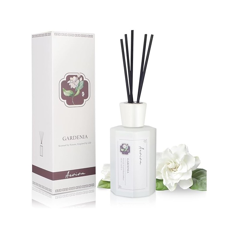 Reed Diffuser Set, 6.76 fl oz Gardenia Scented Oil Diffuser, Home Fragrance with Reed Sticks for Bedroom, Office, Bathroom Shelf Decor & Gifts