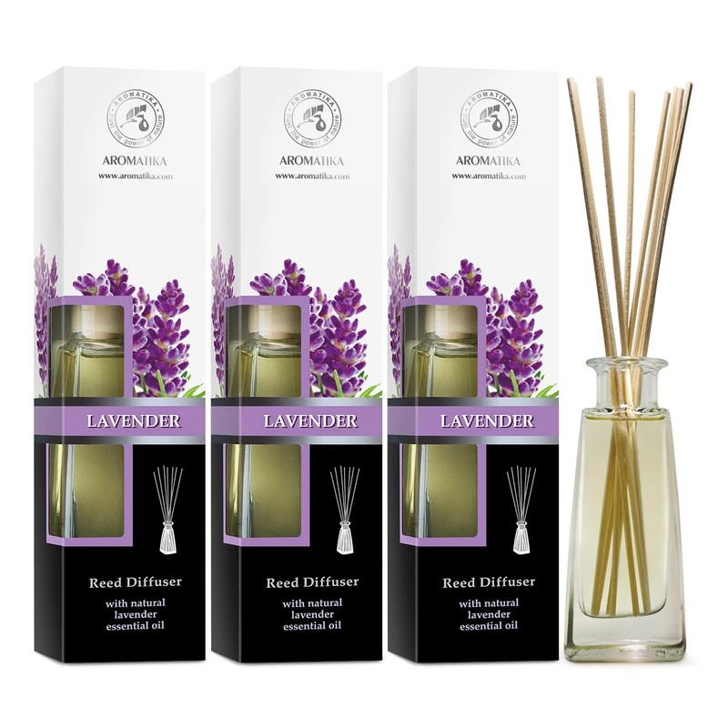 Reed Diffuser with Natural Essential Oil Lavender - 3 x 3.4 Fl Oz - Lavanda Diffuser - Scented Reed Diffuser - Gift Set w/Bamboo Sticks - for Aromatherapy - Home - Office - Fitness