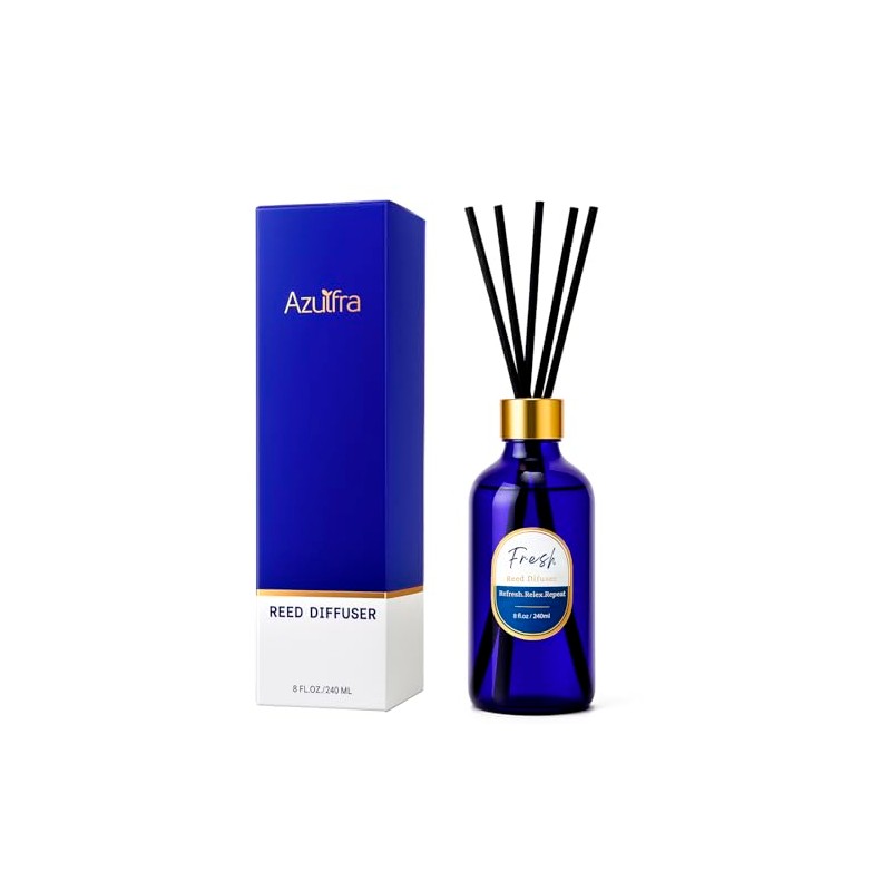 - Complete Set Includes: One elegant blue glass diffuser bottle (8 fl oz/240ml) filled with premium fragrance oil, six natural rattan reed sticks. Customize your scent intensity by simply adding or removing reed sticks