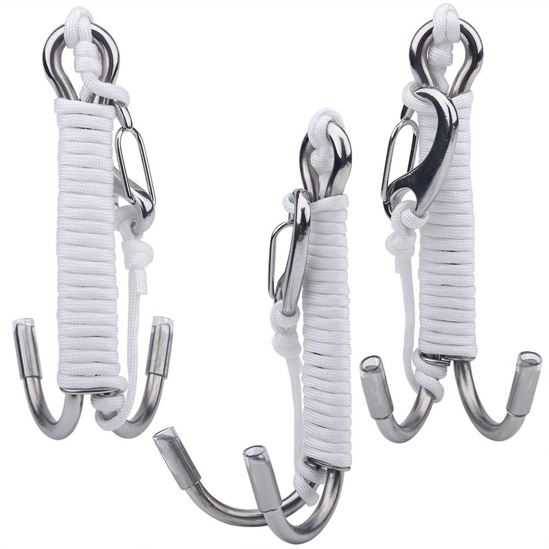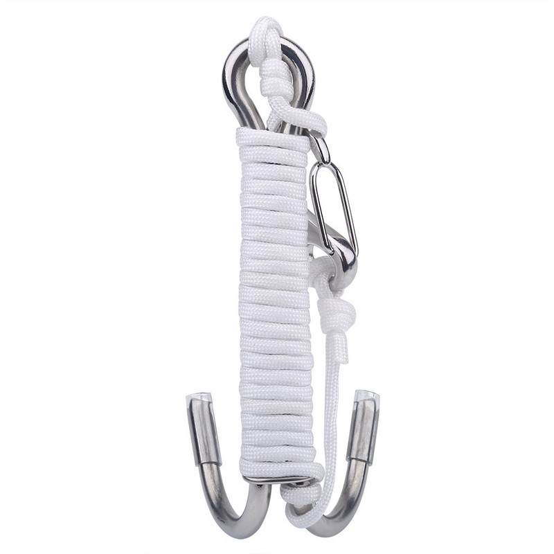 Reef Drift Hook, Diving Double Dual Stainless Steel Reef Drift Hook with Line for Cave Dive(White)