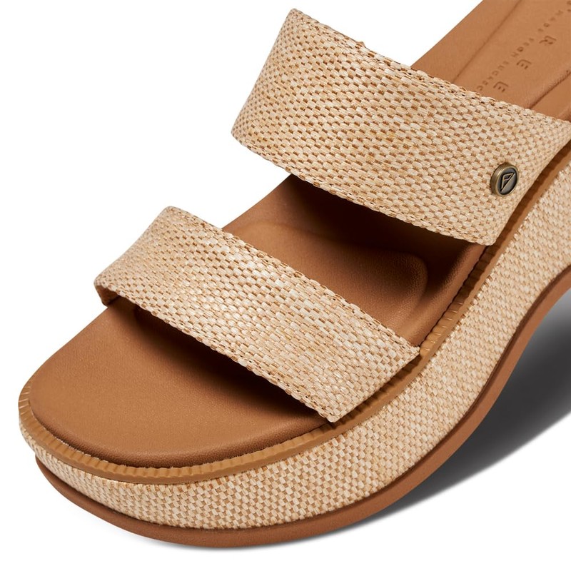 Reef Women's Lofty Lux Hi Slide Sandal, Tan Raffia, 9