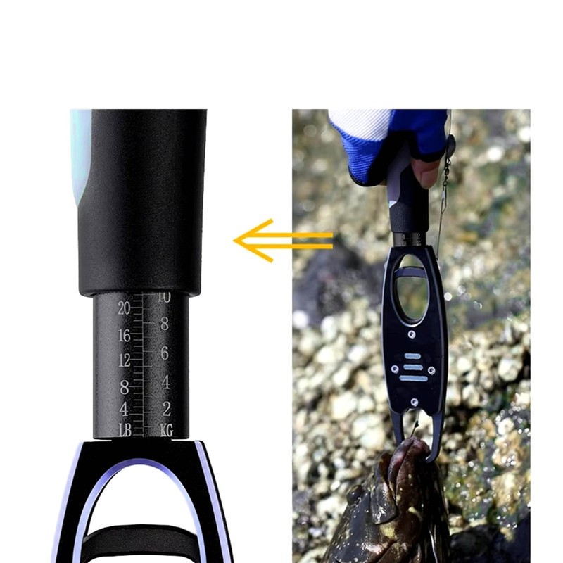 - Lip Grip with Built-in Scale: Handle Your Catch Like a Pro The lip grip offers safe and secure fish handling, protecting your hands from sharp teeth, spines, or slippery surfaces. Its built-in scale gives you an accurate weight reading of up to 18kg, letting you record your fishing triumphs on the spot. Built for both saltwater and freshwater environments, this tool lets you handle, weigh, and release your catch like a seasoned angler, with confidence and ease.